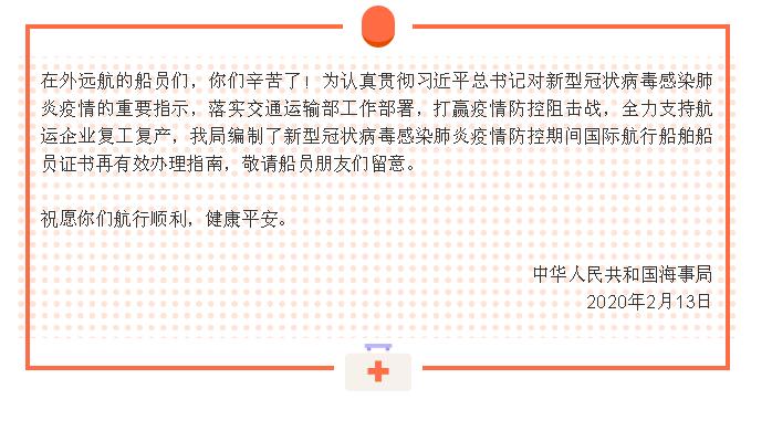 新型冠狀病毒感染肺炎疫情防控期間國際航行船舶船員證書再有效辦理指南